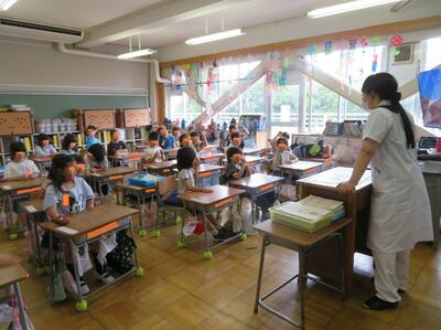 6月9日(月)1年生が給食センターの方をお招きして、栄養指導の授業を受けました。