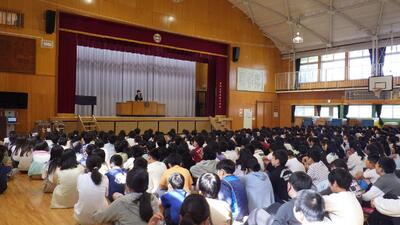 5月8日(木)5月の講話朝会が体育館で行われました。