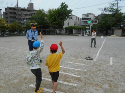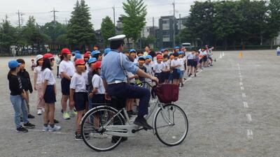 1年生は交差点での安全な渡り方。4年生は自転車の正しい乗り方などを蕨警察署の方から学びました。