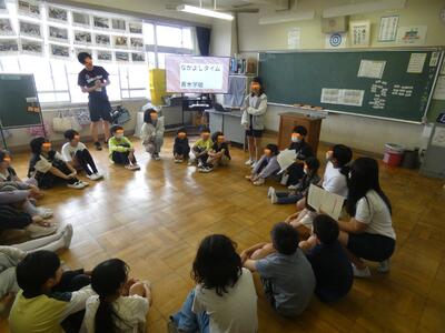 1年生から6年生の異学年で交流しました。今回は6年生が活動の内容を企画して運営してくれました。