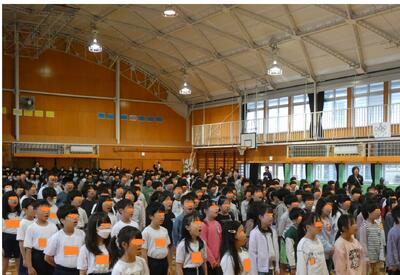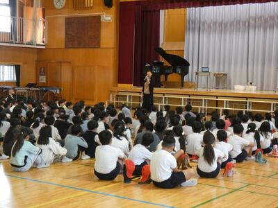 10月28日(火)音楽朝会 投稿: 中東小 (11/06) 10月28日(火)音楽朝会が行われました。 11月の音楽会に向け、「ビリーブ♪」の練習を行いました。本番で練習の成果を発揮してもらいたいです。 -
